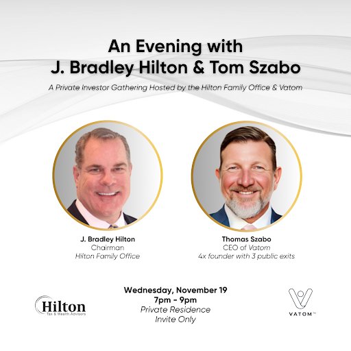 Vatom and Hilton Family Office Host Private Investor Evening with J. Bradley Hilton and Tom Szabo